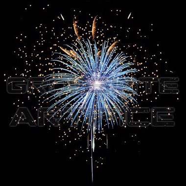 16 envolées de comètes 20 mm aux explosions de couleur bleu aqua et aux crépitements incessants.