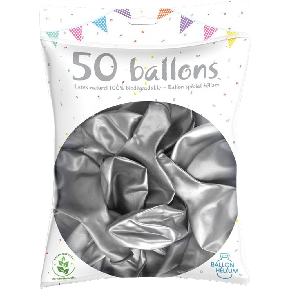 Ballons couleurs méallisés biodégradables x 50 Argent