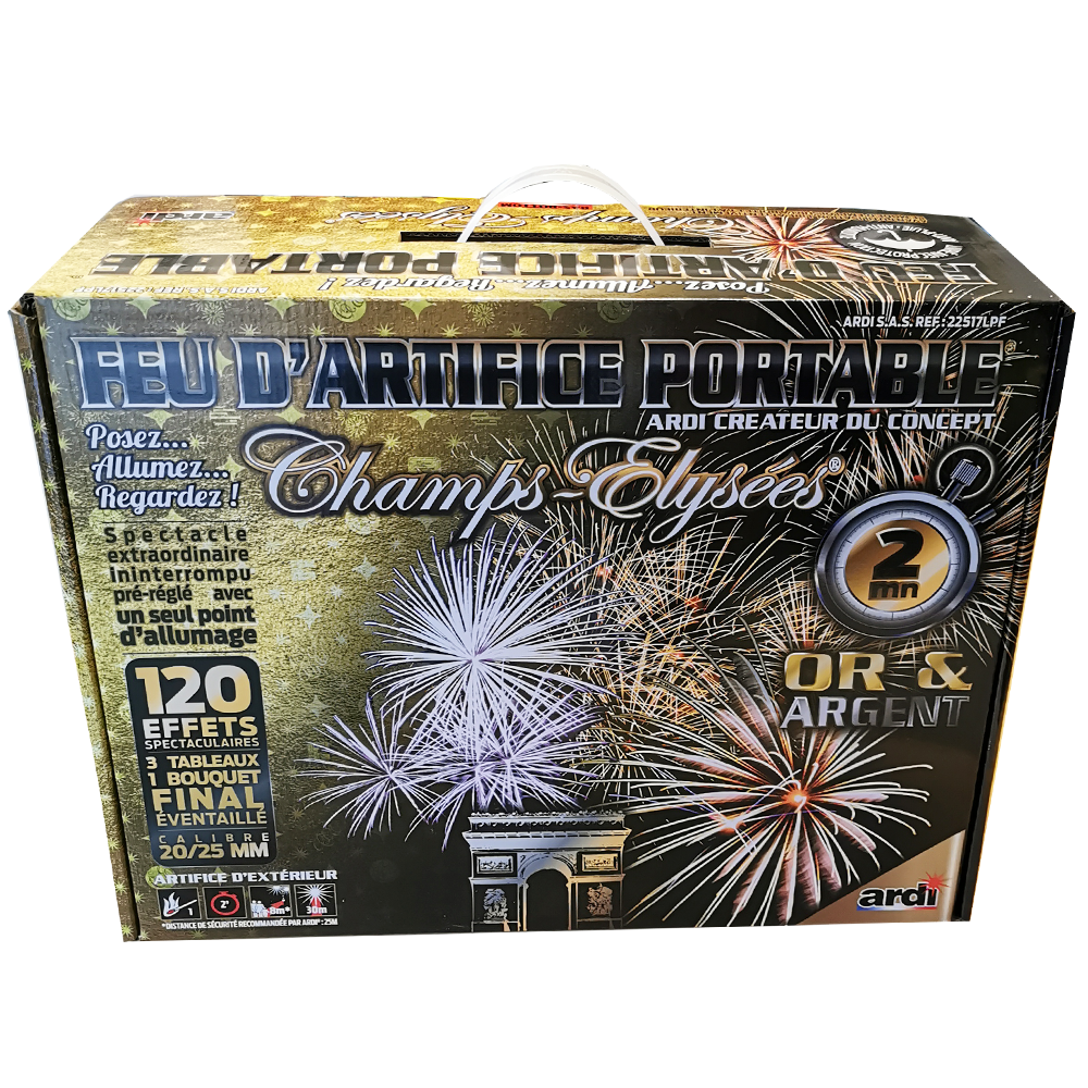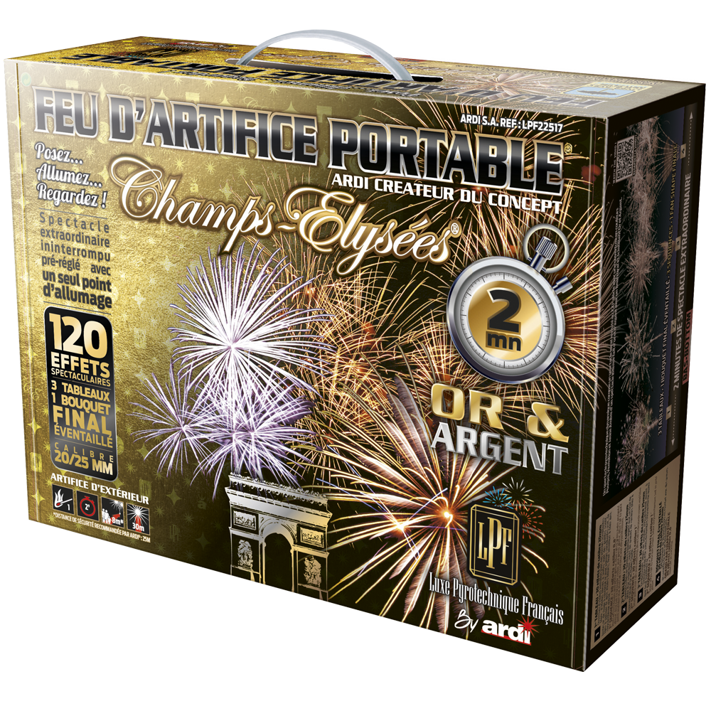 Feux automatique complet XXL de 2 min entièrement or et argent, un modèle haut de gamme que vous pourrez proposer à vos clients !