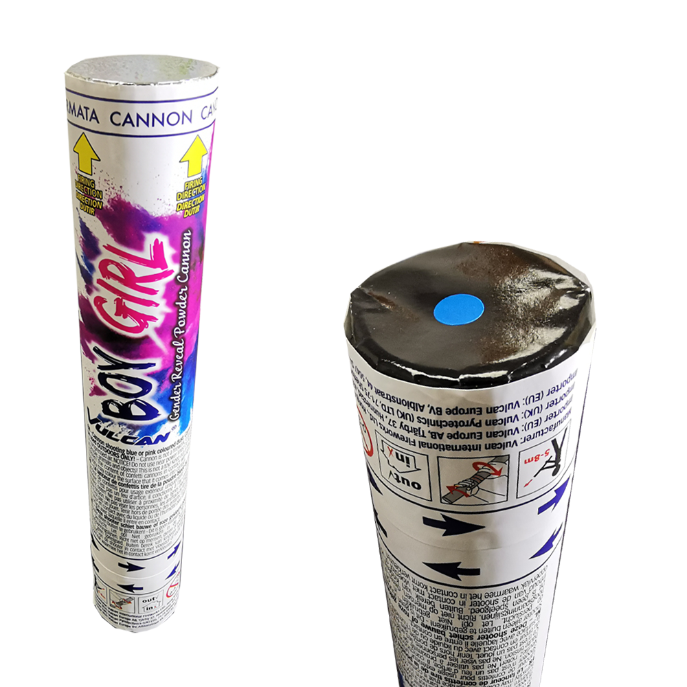 Tournez et la poudre est propulsée directement dans le ciel libérant un nuage bleu révélant le sexe du bébé !
