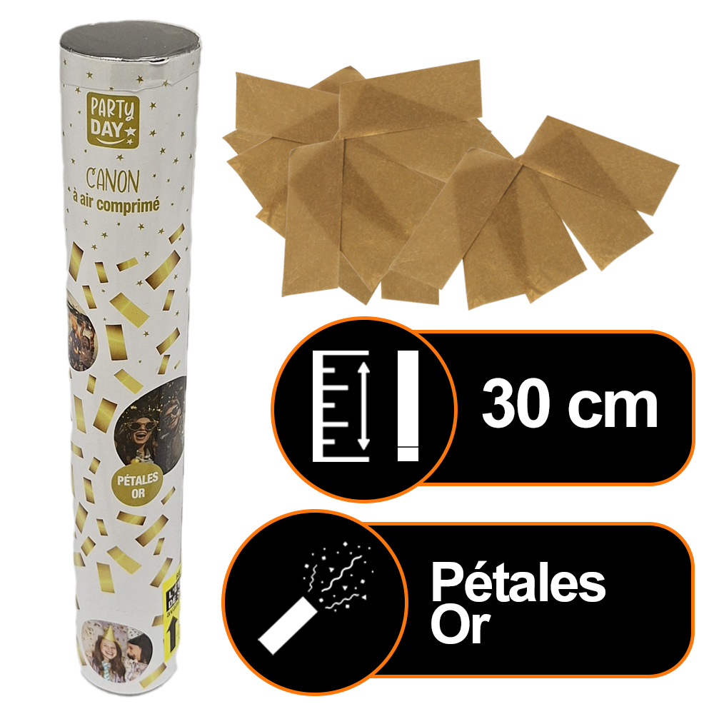 Le canon à confettis pétales or 30 cm Pyragric est un produit festif à forte rotation, idéal pour les magasins de fête, boutiques d’artifices et revendeurs événementiels.