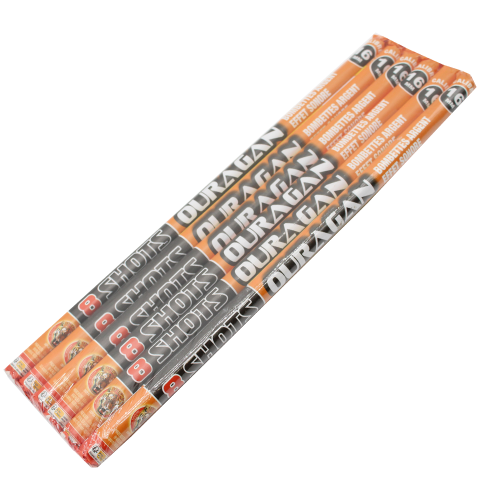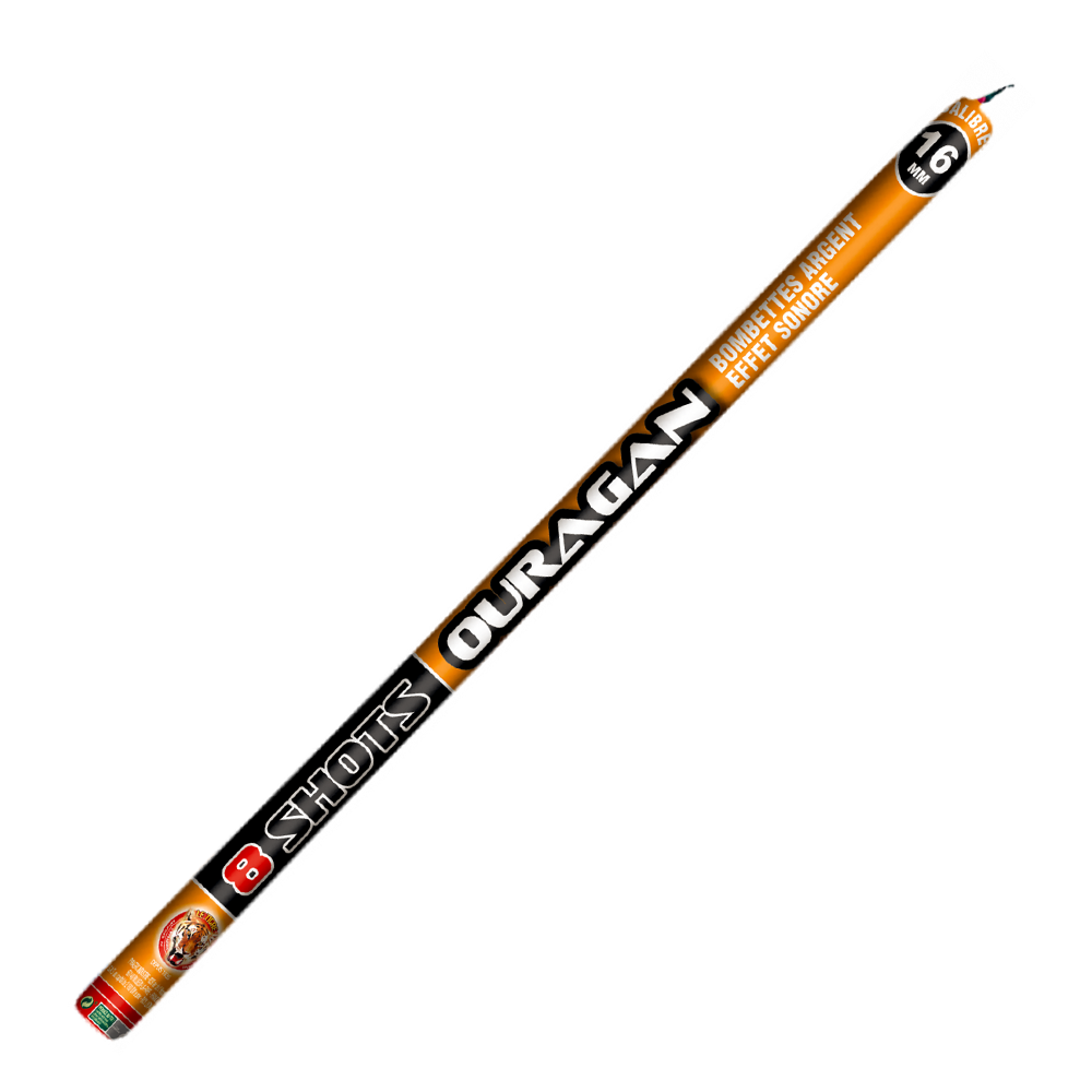 La Chandelle 8 coups “Ouragan” est un produit attractif et efficace pour dynamiser votre rayon artifices. Classée en catégorie F2 et réservée aux plus de 18 ans (registre de vente obligatoire), elle propose 8 tirs successifs de calibre 18 mm atteignant jusqu’à 30 mètres de hauteur. Chaque tir libère une bombette argentée lumineuse accompagnée d’un effet sonore, offrant un spectacle rythmé et très apprécié du public.