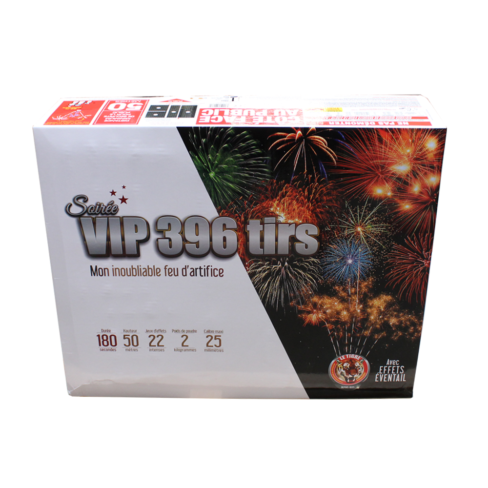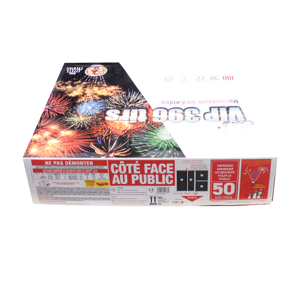 Un feu d’artfice d’exception pour les grandes occasions! C’est un indispensable à avoir dans votre catalogue pour offrir à vos clients un spectacle qu’ils redemanderons. Avec 396 coups il propose un spectacle de 3 minutes qui en mettra plein la vue. Parfait pour les mariages, les anniversaires ou un nouvel an en grande pompe.