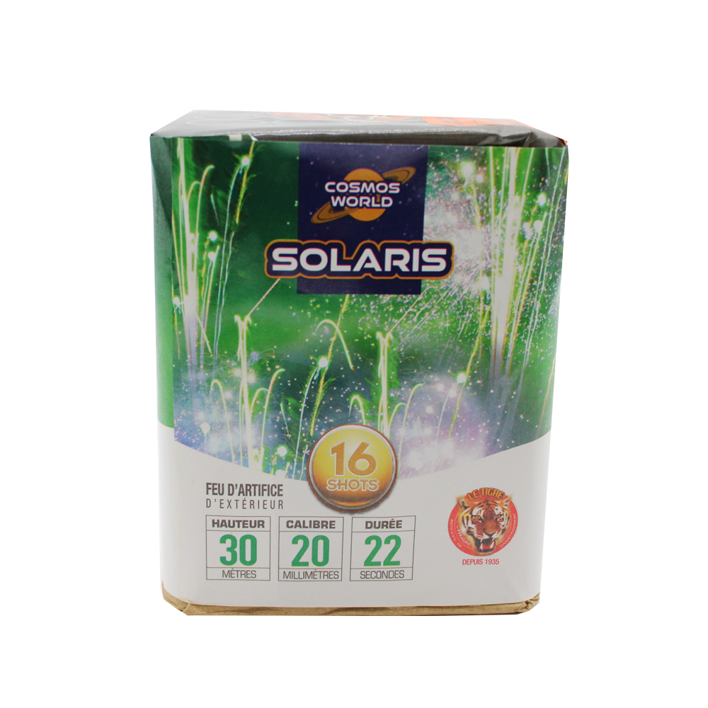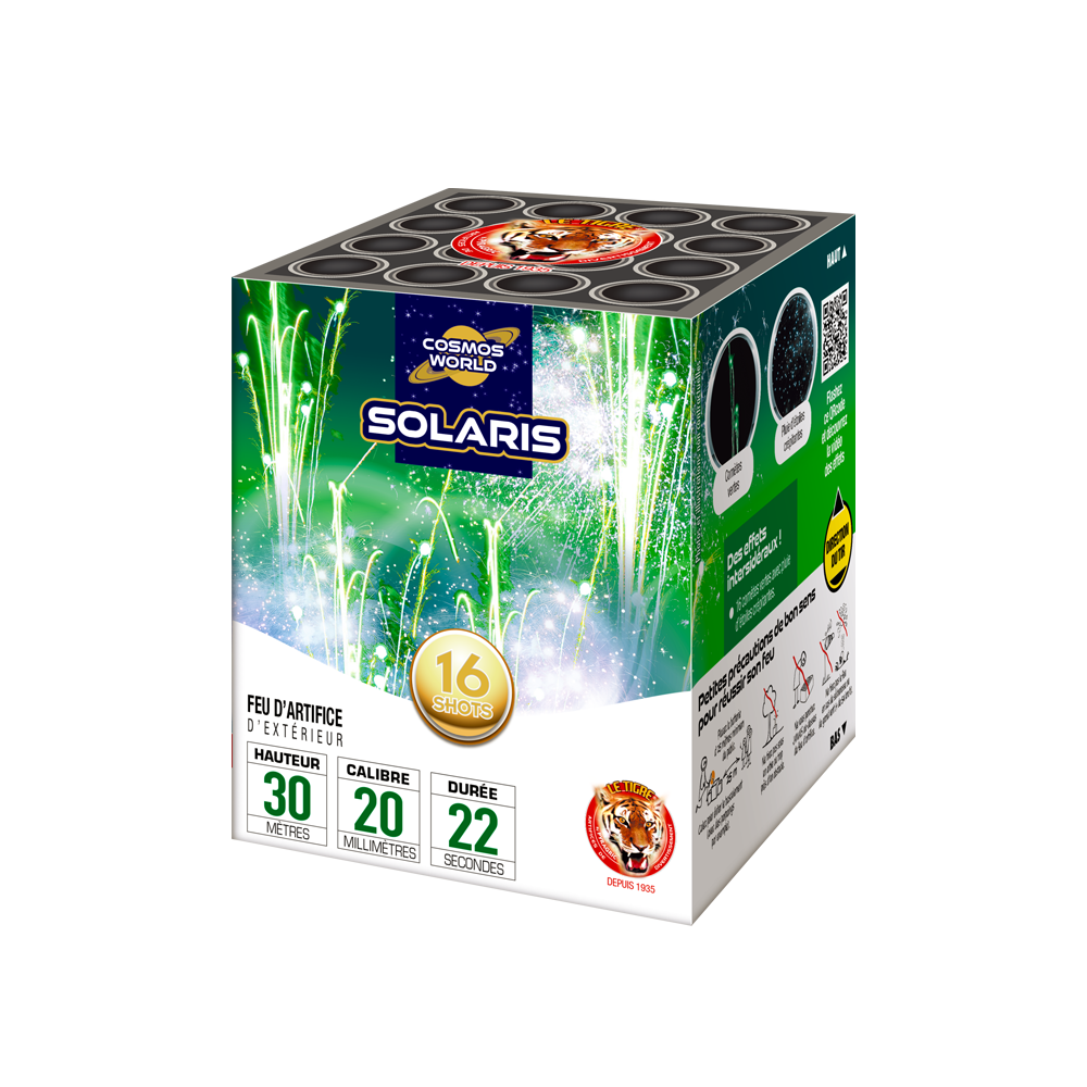 Côté spectacle, Solaris propose 16 tirs de comètes vert émeraude qui s’élèvent dans le ciel avant de se terminer par une belle pluie d’étoiles crépitantes, un effet visuel apprécié du grand public et particulièrement adapté aux événements festifs.