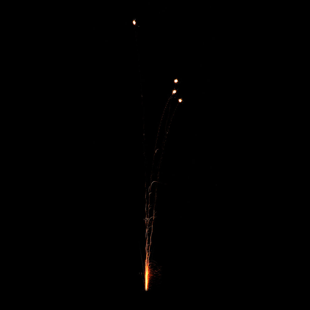 Projette dans le ciel une comète argent qui explose, sans lumière, juste du bruit, également connue par les clients sous le nom de lance-boules pétard.