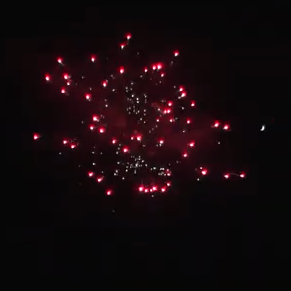 19 comètes de 20 mm aux explosions à effets pivoines de multiples couleurs.